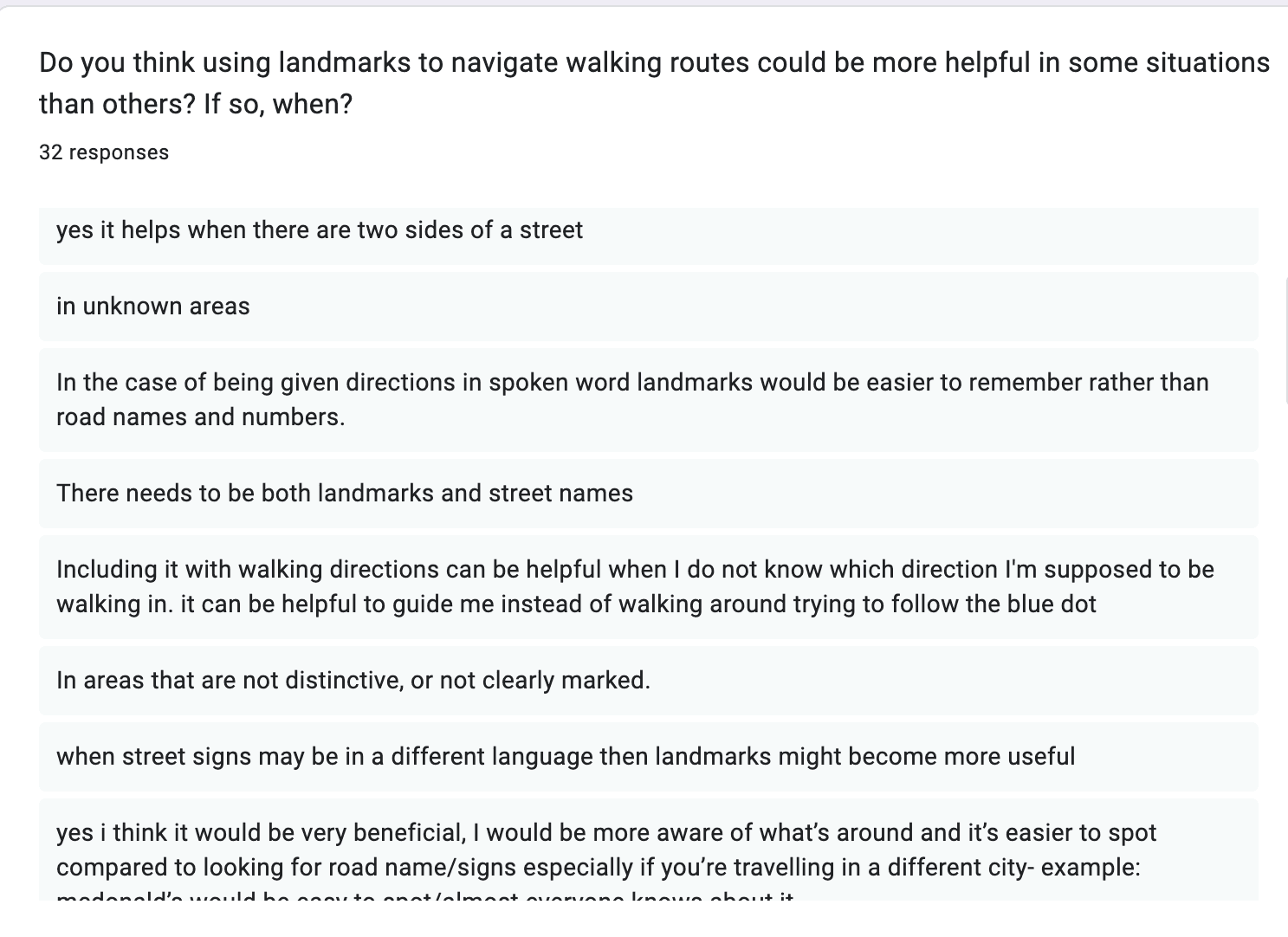 Once the structure and placement of landmark-based walking details were validated, I translated the concept into high-fidelity designs that aligned closely with Google Maps’ visual language.