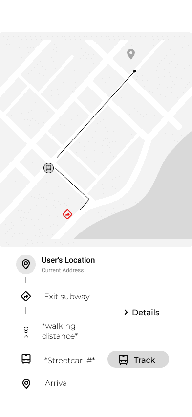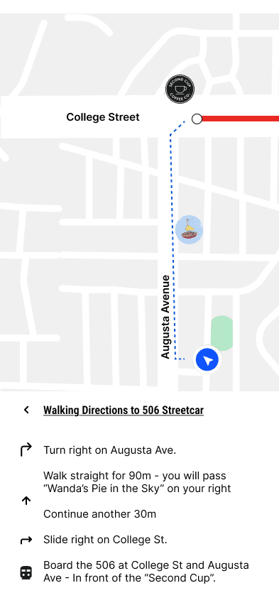 Rather than designing an unrealistic solution, I treated live transit tracking as a supporting feature, reinforcing the primary goal: helping users confidently reach the correct stop through clearer, landmark-based walking directions.