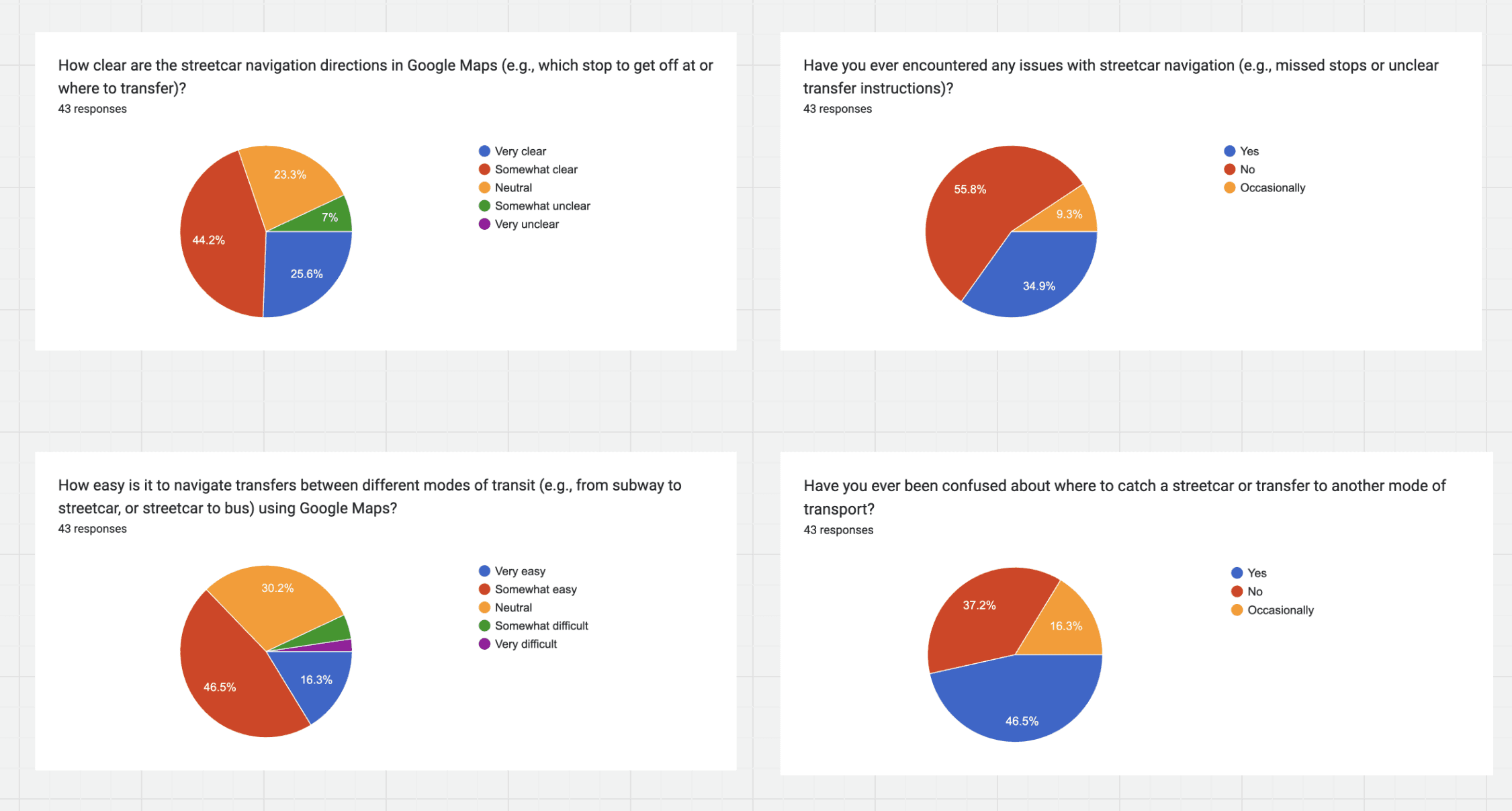 From earlier survey responses, users frequently mentioned that real-time transit updates felt inaccurate, particularly when using TTC data. This feedback highlighted a trust gap in live tracking features, where reliability depends heavily on data shared by transit agencies through GTFS Realtime feeds (General Transit Feed Specification - transit agencies use this to share data with apps like Google Maps). In Toronto, limited TTC data availability further impacts how precise these updates can be.